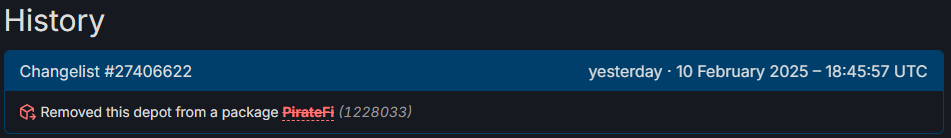 Valve have banned PirateFi and it looks like Valve killed the depot file so people who did get the game while it was on Steam won’t accidentally download it and infect their system.